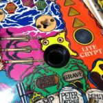 Here’s a great game with a great theme. Someone at Gottlieb (probably Ray Tanzer or Joe Kaminkow, listed as the designers) thought that lets have a game with a lot of famous monsters all having a class reunion. Dracula, the Werewolf, Frankenstein, Medusa, they are all here with a few other familiar looking characters. Why not make it the Class of 1812? To just name a few, the game features Tchaikovsky’s 1812 classic music with full on chicken sounds as the chorus, chattering talking teeth, a severed hand and a fully lit up and pumping heart. Sounds like pinball gold to me!